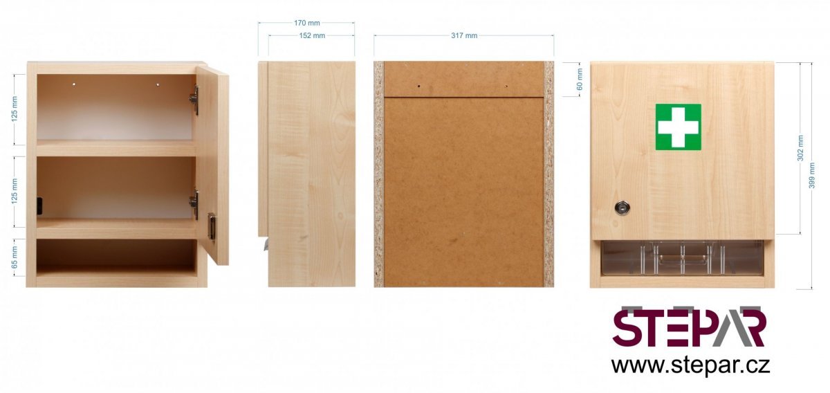 Produkt Nástěnná lékárnička dřevěná pro 10 osob skladem.