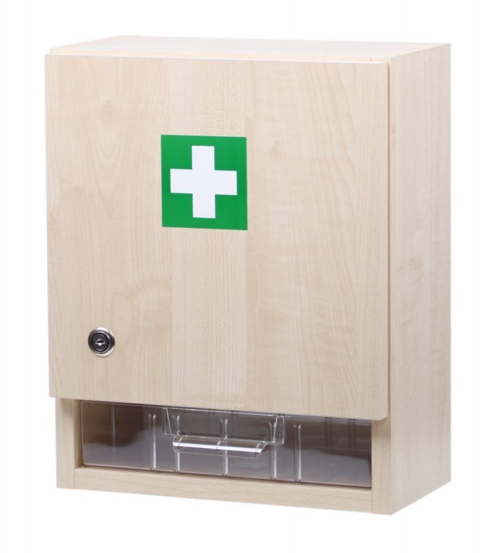 Produkt Nástěnná lékárnička dřevěná pro 20 osob skladem.