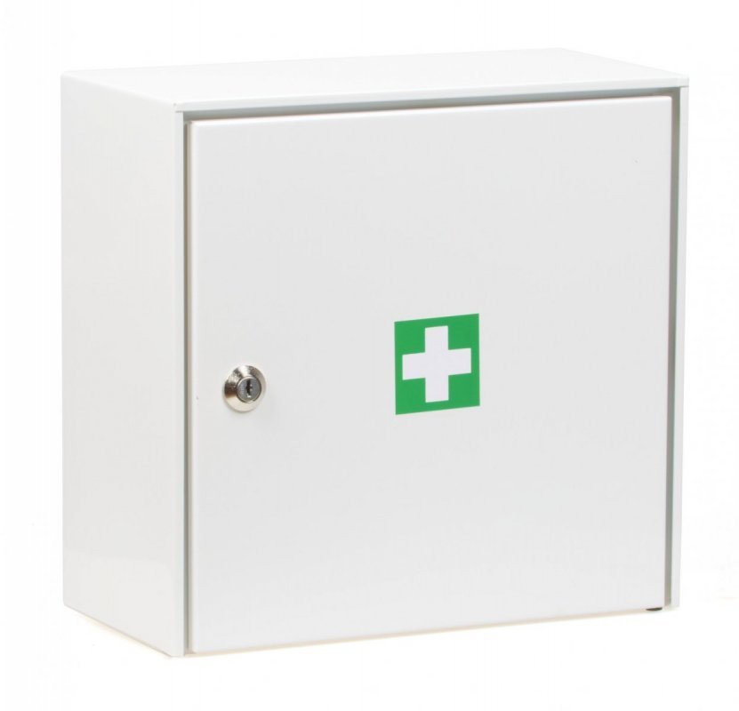 Nástěnná lékárnička pro 20 osob kovová je navržena tak, aby zajistila zdravotnický materiál až pro 20 osob, které potřebují ošetření. Lékárnička je vyrobena z kovu a rozměr skříňky je 30 cm x 30 cm x 15 cm. Skříňka je uvnitř poličkou rozdělena na dva stejné prostory. Kovové provedení je praktičtější na údržbu,skříňka se dá lehce umýt. Skříňka lékárničky je uzamykatelná, k dispozici jsou 2 klíčky. Součástí lékárničky je i montážní materiál – šrouby a hmoždinky.