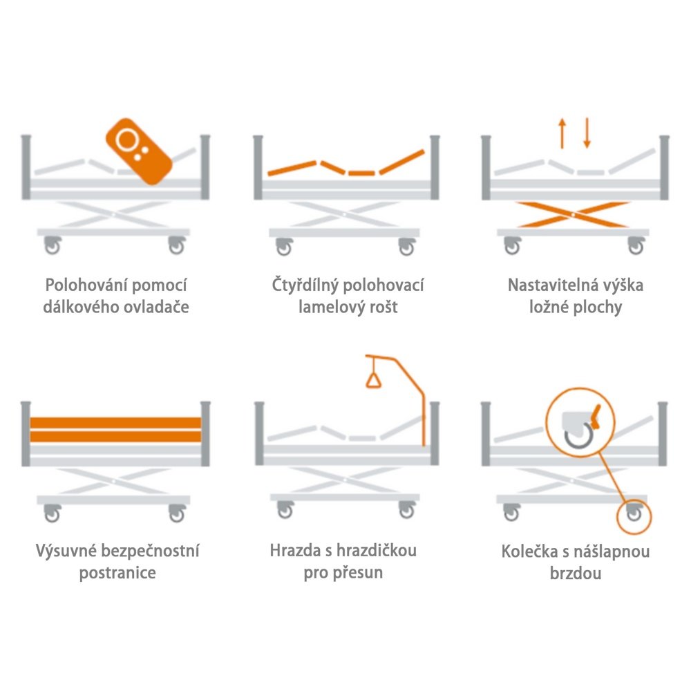 Produkt PB 526, Polohovací elektrické lůžko, nosnost 160 kg skladem.