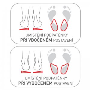 Poloha pätovej kosti vzhľadom na os dolnej končatiny je veľmi dôležitá pre správny anatomický tvar chodidla. Správna poloha pätovej kosti je vtedy, keď je jej os kolmá na podložku. Táto poloha zabezpečuje rovnomerné napätie svalov nohy, správne vyrovnanie klenby nohy a zabraňuje preťaženiu jednotlivých oblúkov klenby. Asymetrická podložka pod pätu je vyrobená zo silikónového gélu. Je tvarovaná do mierneho klinu, ktorý svojím tvarom pôsobí proti nesprávnej polohe päty. Jeden pár podložiek pod pätu možno použiť pri konkávnom aj konvexnom nesprávnom nastavení osi dolnej končatiny.