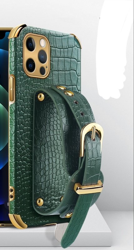 Luxusné puzdro na telefón s remienkom na zápästie s textúrou krokodílej kože