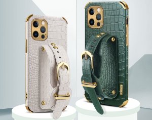 Luxusné puzdro na telefón s remienkom na zápästie s textúrou krokodílej kože