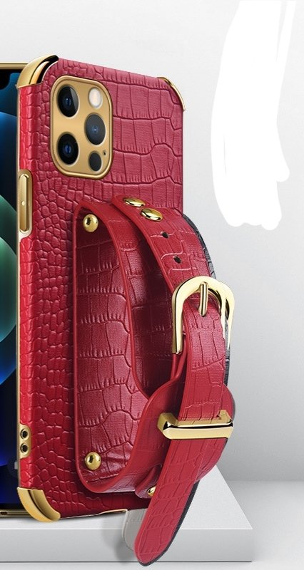 Luxusné puzdro na telefón s remienkom na zápästie s textúrou krokodílej kože